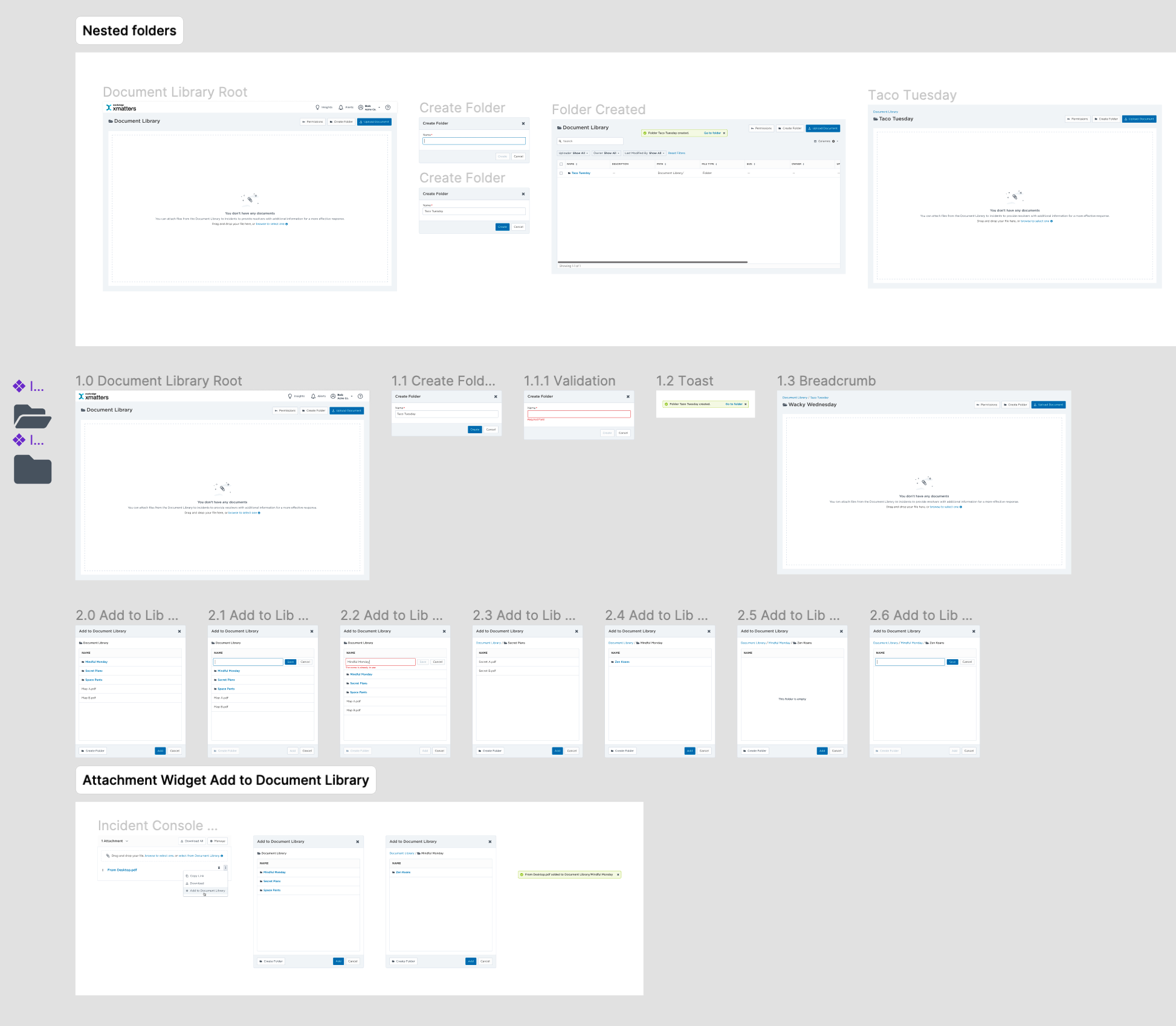 This project is an example of a feature I worked on while at xMatters. A feature like Document Library involves considering: user flows, reusable components, consistent patterns, and communicative collaboration to make it all happen. On top of it all, a big practice is being organized and thorough when working on these projects.